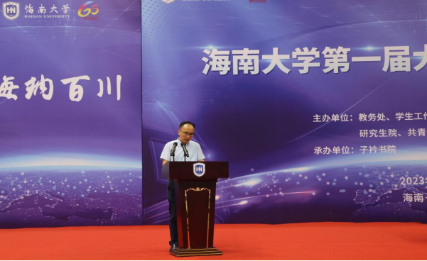 副校长陈骏提到海南大学始终坚持以学生为本,注重发展学生能力的横向面,科技文化节与科技文化作品博览会的召开,为学生们提供了展现创新创业潜力的卓越平台。在此,他提出三点希望:一是希望各学院锚定学科建设和人才个性化培养的主责主业,深入贯彻实施“六卓越一拔尖”计划2.0和系列“101”计划,深化专业综合改革,全面振兴本科教育,提高人才培养质量。二是希望各书院探索现代书院制实施路径,注重 “浸润”“熏陶”“养成”“感染”“培育”,改善学生的专业局限,拓展学生的视野,通过优秀学生事迹交流和实践合作,进一步激发学生创新创业的动力。三是希望书院、学院应加强双院协同,聚焦通识教育、专业教育和创新创业教育主线,以学校三大改革为契机,研究真问题,真解决问题,积极破解学科建设和人才培养上的堵点、难点和痛点,助推学校拔尖创新人才培养。