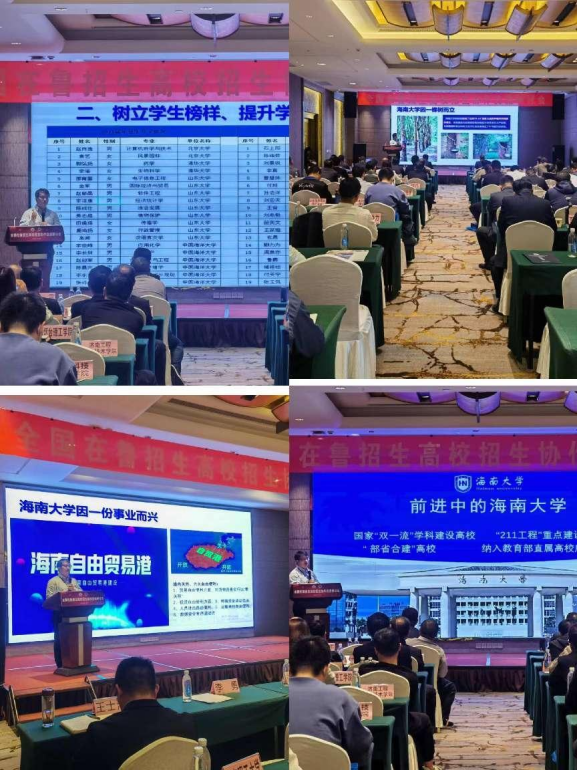 会上,海南大学英国威廉希尔公司党委书记李海朋做《精准定位抓效率、榜样引领提信心》专题报告。详细讲解了海南大学近几年的发展情况以及发展中依托的环境、政策、人物及事件,着重强调了狠抓宣传效率及匹配生源基地的重要性,指出要师生联动做好招生宣传,不断提高招生宣传效率,此外,还系统介绍了海南大学在优化办学条件、学科专业建设、高层次人才培养、师资队伍建设、科学研究、学校“三大改革”等方面取得的成就,受到与会招生高校、高中的一致好评。
