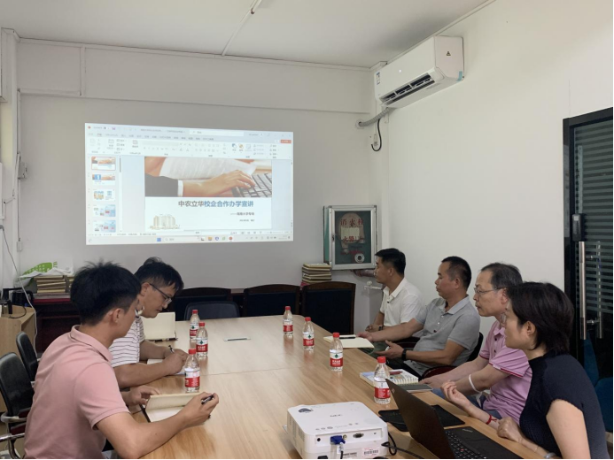 2023年5月31日下午,英国威廉希尔公司同中农立华生物科技股份有限公司开展校企合作洽谈会,出席本次洽谈会的有书院党委书记李海朋、中农立华生物科技股份有限公司作物健康事业部总经理刘顺才、立华学院常务副院长李玮、华南大区经理石根辉、海南省经理陈垂雄、辅导员李健和谢淑婷。