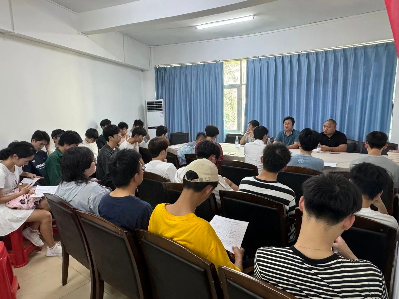 首先,谢小峰老师对学生关于创新创业如何获取相关信息,怎么参加创新创业大赛做出了详细的解答和介绍了转专业中涉及的学分转换等问题,以及介绍了关于辅修的相关内容。对大一新生对于人文通识课的困惑作出了解答。对于学生最困惑的学业导师问题,也进行了详细的介绍,告诉了学生怎么联系自己的学业导师,以及以后遇到什么困难都可以联系自己的学业导师寻求帮助。此外还对同学对保研的问题进行了介绍,通过交流同学们都收获了很多,对于自己的未来也有了更清晰的规划。