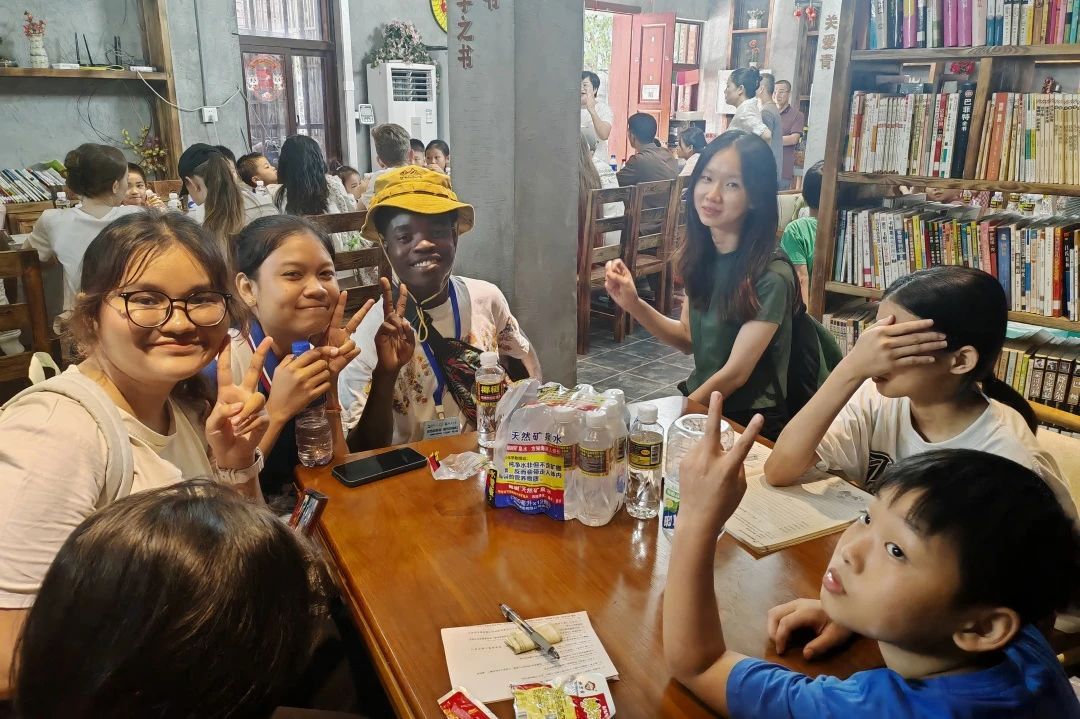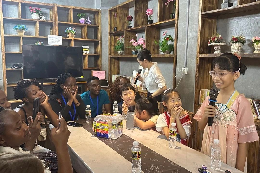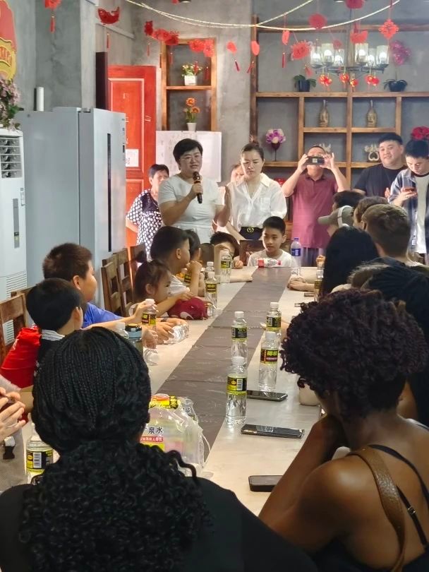 在社区长者食堂,外国学生们与社区小朋友们开展了丰富多彩的文化互动。双方以“中华诗词接龙”游戏拉近距离,小朋友们还献唱了《苹果香》等经典中文歌曲,清脆的歌声与欢快的笑声展现了中华文化的活泼生机。这一环节不仅增进了外国学生对汉语学习的兴趣,更深化了中外青少年之间的友好情谊。