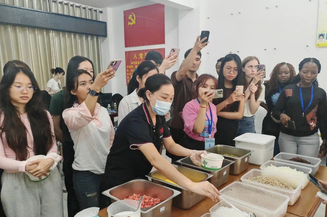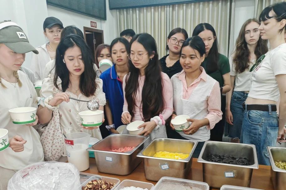 作为活动亮点,海南特色美食清补凉制作体验备受期待。在专业师傅的指导下,外国学生们学习了清补凉的配料搭配及传统制作工艺,并亲手完成制作。学生们将成品赠予社区小朋友,在分享中传递温暖,也体会到海南饮食文化的独特韵味。
