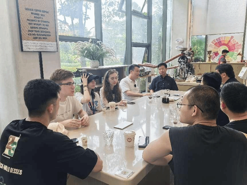在庄园的品鉴区,兴隆咖啡的讲解员准备了兴隆特色咖啡以供学生们品鉴。来自俄罗斯的咖啡爱好者刘博文对兴隆特调咖啡赞不绝口。