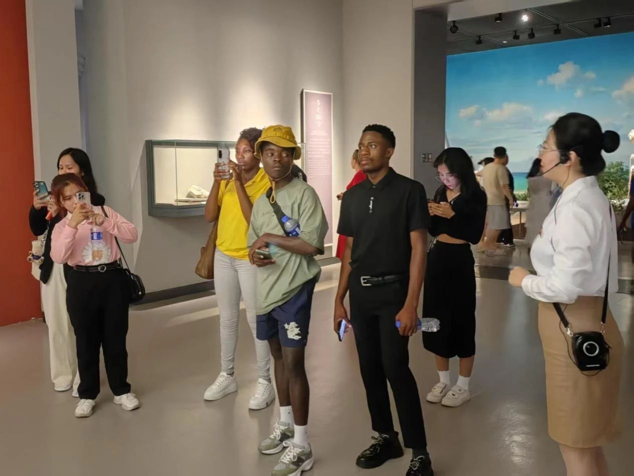 午后,阳光透过树叶的缝隙,洒在海南省博物馆的青石板路上,为这场文化之旅增添了一份静谧与庄重。国际学生们仿佛穿越时空,踏入了一个充满历史回响的殿堂。博物馆内,每一件文物都是一段尘封的故事,每一片展区都是一幅生动的历史画卷。