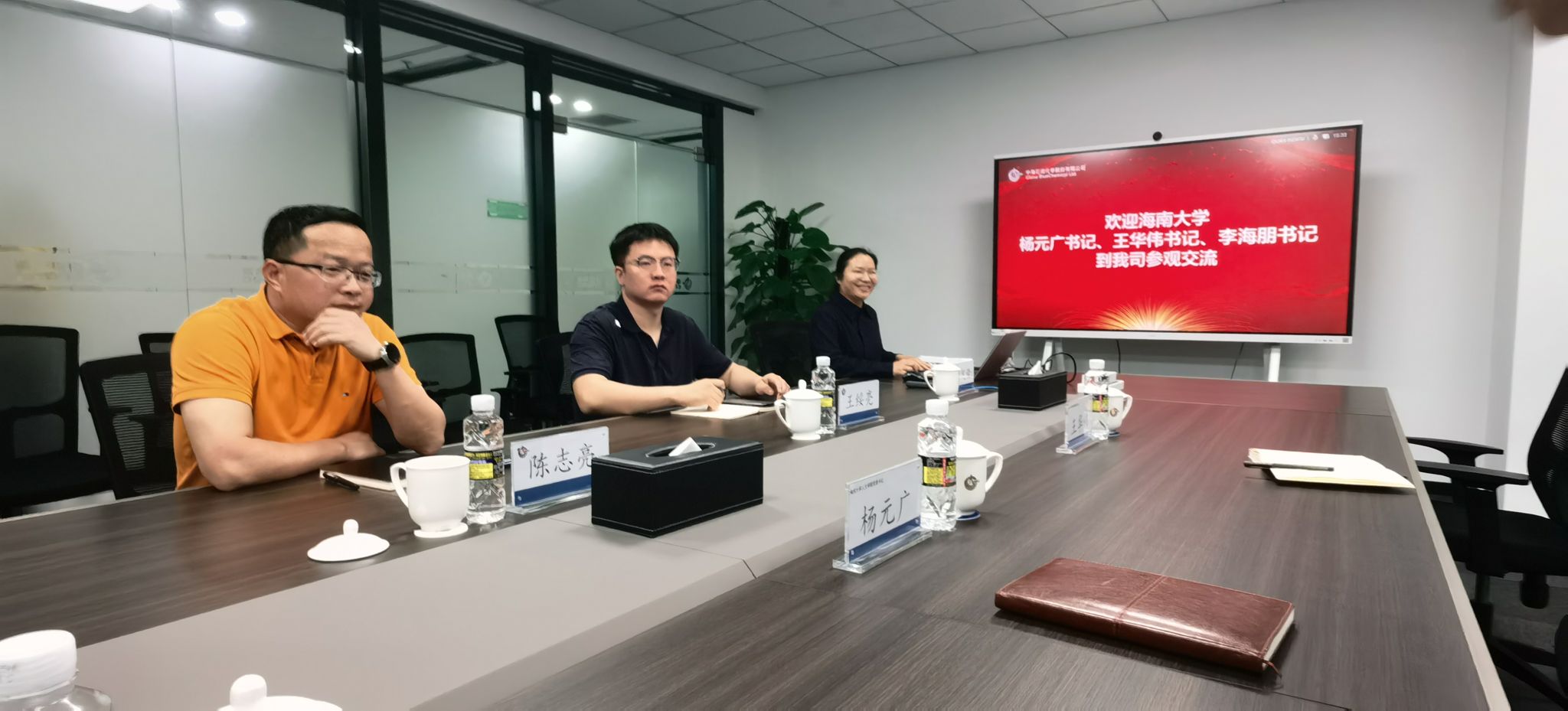 2025年4月18日,书院党委书记李海朋协同凤翔书院、人文学院党委负责人一同走访中海化学销售(海南)有限公司华南分公司,公司总经理陈志亮(我校校友)介绍了公司的主要业务和业务范围,介绍了我校毕业生在企业发展的情况。陈志亮总经理热诚期待更多海大优秀毕业生加入中海油大家庭、加入中海化学销售华南分公司,在中海油这个大平台上建功立业,大展身手。