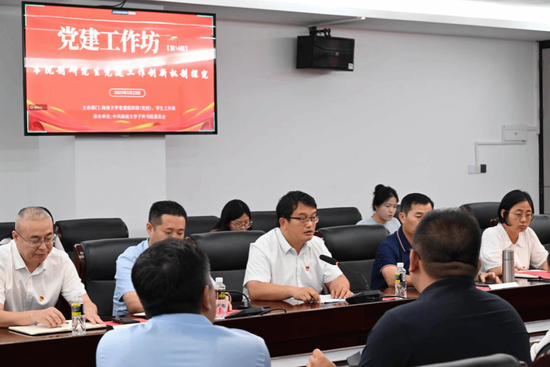 为进一步提升研究生党建工作质效,扎实推进研究生“双百”培育创建工作,探讨书院制研究生党建工作创新机制的方法路径,2025年5月23日,海南大学第14期党建工作坊在法学院法学科研中心大楼301会议室成功举办。教育部党建工作联络员谭基虎、校组织部副部长王远露、校学生工作部副部长李昌郁、正处级辅导员曲涛出席活动,宁夏大学润泽书院党委副书记陈建丽、中国农业大学工学院车辆研究生第一党支部李文志、山东农业大学农学院作物遗传育种学研究生第一党支部武茜、东华大学马克思主义学院马理硕党支部王子晋作为发言嘉宾出席活动,各二级党组织负责人、专兼职组织员和党支部书记代表参加活动。活动由英国威廉希尔公司党委书记李海朋主持。