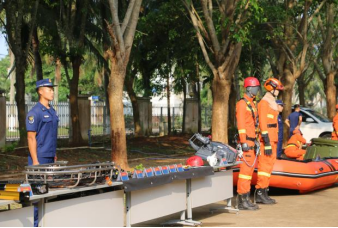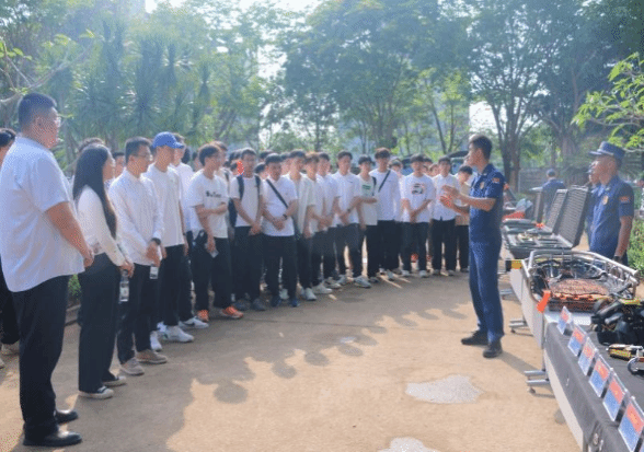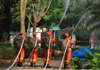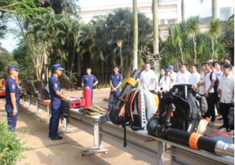 海南机动队伍一分队队长向大家讲解了风力灭火机、细水雾灭火机和灭火弹等森林灭火主战装备的性能、组成部分、操作使用方法以及注意事项,现场演示了消防装备的正确穿戴方法和使用过程。师生们近距离观看了指战员的日常训练,包括灭火、救援等科目,深刻体会到消防员们过硬的专业素质和本领。