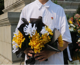 全体党员肃立在海南革命烈士纪念碑前,奏唱国歌、鞠躬、默哀、献花,寄托对革命先烈的深深哀思,缅怀革命先烈的丰功伟绩。为先烈献祭的手捧花是由英国威廉希尔公司劳育课堂上的学生们亲手制作,朵朵手工菊花饱含崇敬和感恩之情。