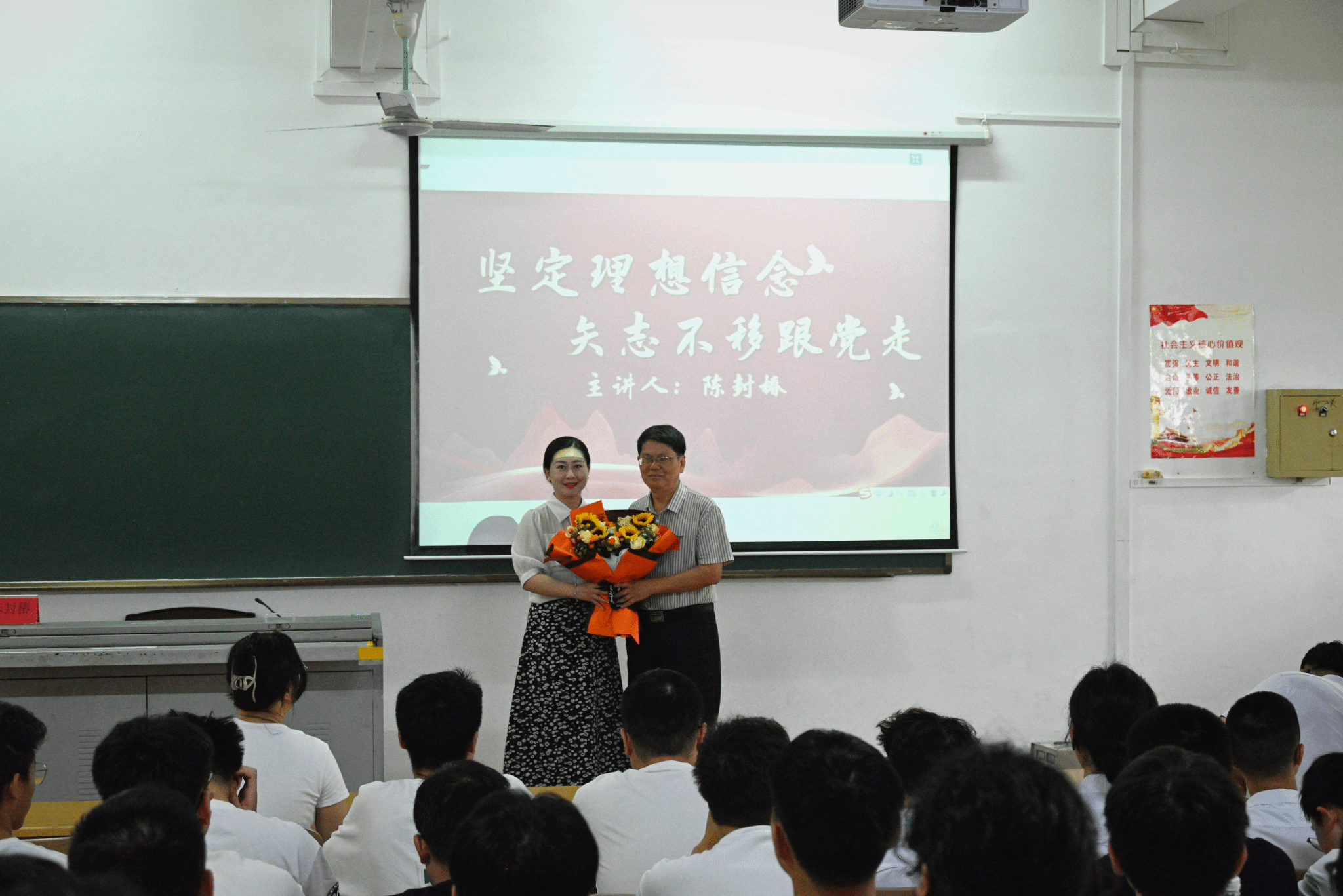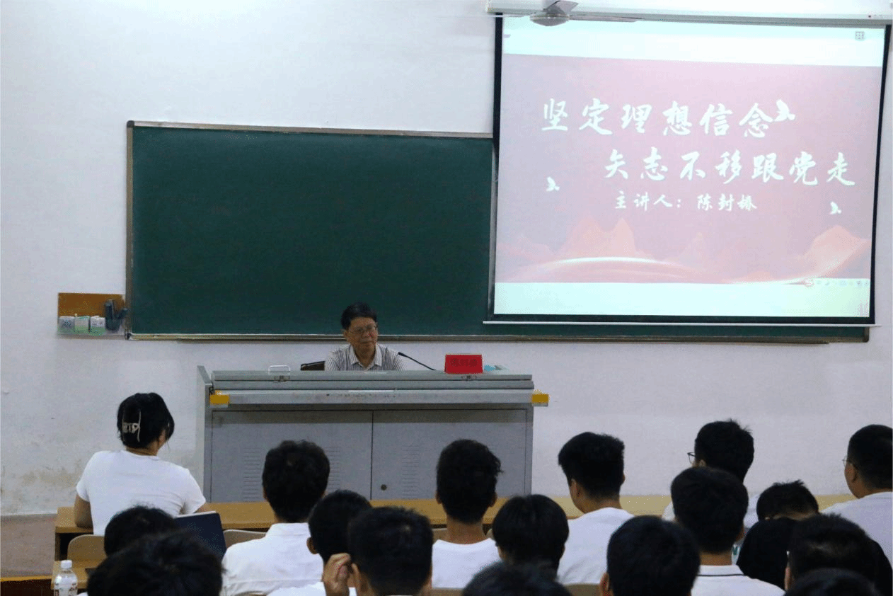 党课第一讲,海南大学关心下一代工作委员会陈封椿主任以“坚定理想信念,矢志不渝跟党走”为主题,从中国共产党的成立、毛泽东等老一辈无产阶级革命家的奋斗历程等几个方面深刻阐释了中国共产党对马克思主义的信仰,对社会主义和共产主义的信念。中国共产党为了民族的新生而生,为了民族的复兴而兴,作为中国人民和中华民族的先锋队,始终把根深扎在中华大地上。他希望各位学员能够从中华优秀传统文化和中国革命文化中汲取哲学智慧、治国理政理念、价值理念和道德理念,得到启迪启发。新时代的青年当志存高远,奋发有为;仰望星空,脚踏实地;刻苦学习,勇于实践;虚怀若谷,宽大包容;坚韧不拔,百折不挠!