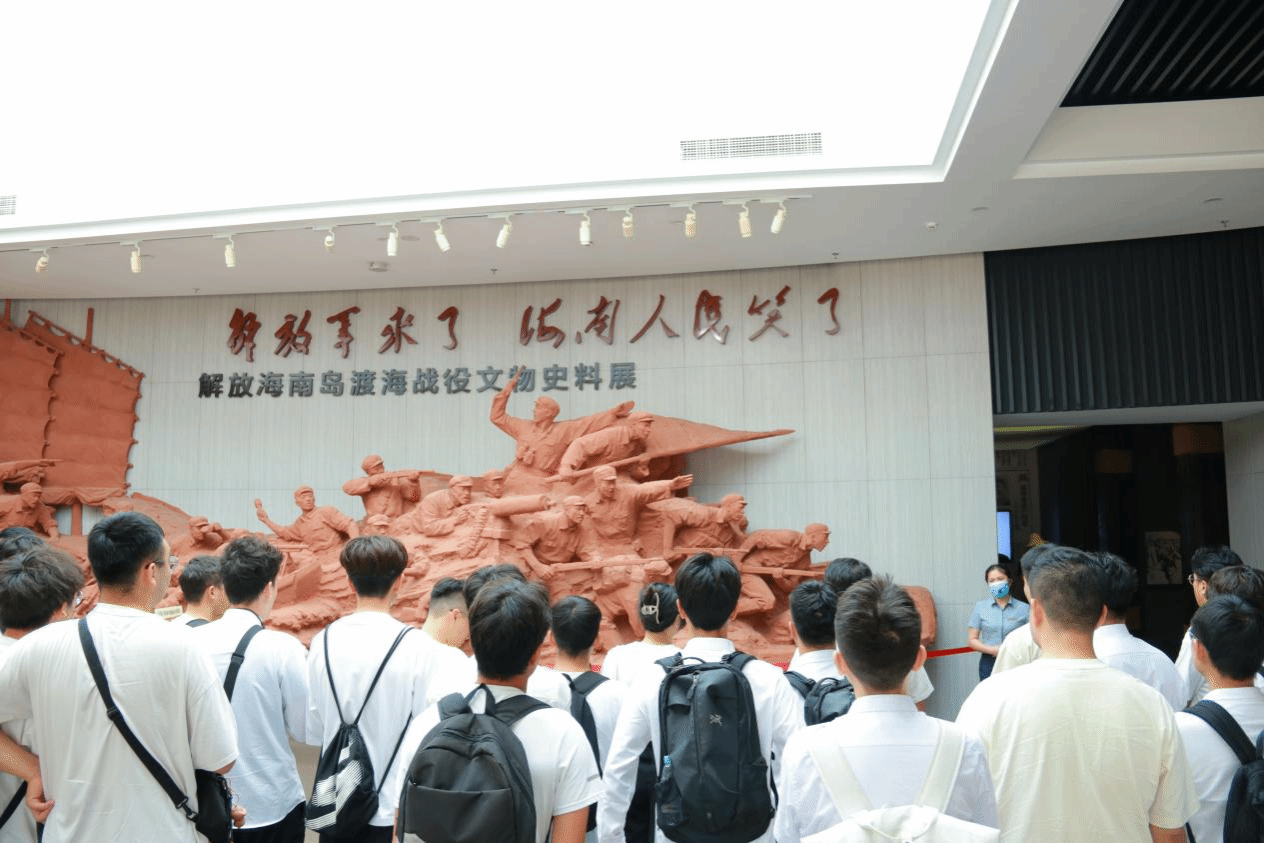 临高解放公园位于临高市金盆岭临高角,是解放军渡海登陆战的主要登陆点,是省级爱国主义教育基地。师生们首先进入解放海南临高角登陆纪念馆,馆内设有多个场景,包括历史背景、文物展支前、木船打军舰等。馆内展出了大量珍贵的文物和图片,包括解放军当年的军衣、军帽、军鞋等展品。通过声、光、电、影像等多种技术及手段,全景式地再现了人民解放军在广大人民群众支持下,强渡琼州海峡,创造帆船打败军舰的战争奇迹。师生们在讲解员的带领下,详细了解了渡海作战解放海南的光荣历史,以及先烈们的丰功伟绩。