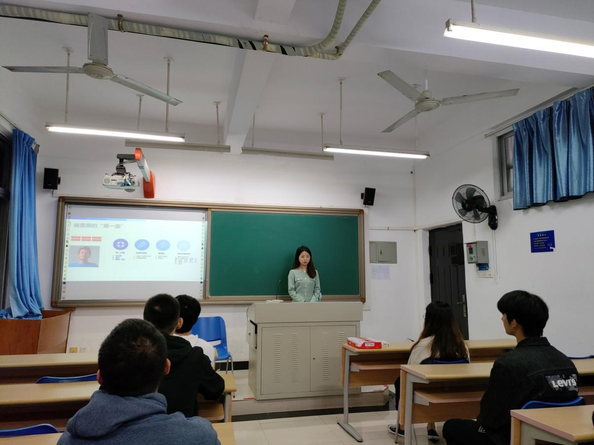 宣讲会主要从简历制作技巧、面试技巧、模拟面试三个方面进行。首先,柏雪老师从简历制作理念切入主题,指出简历制作版面需简洁大方,要在“黄金广告位”展现出本人最大的优势。
