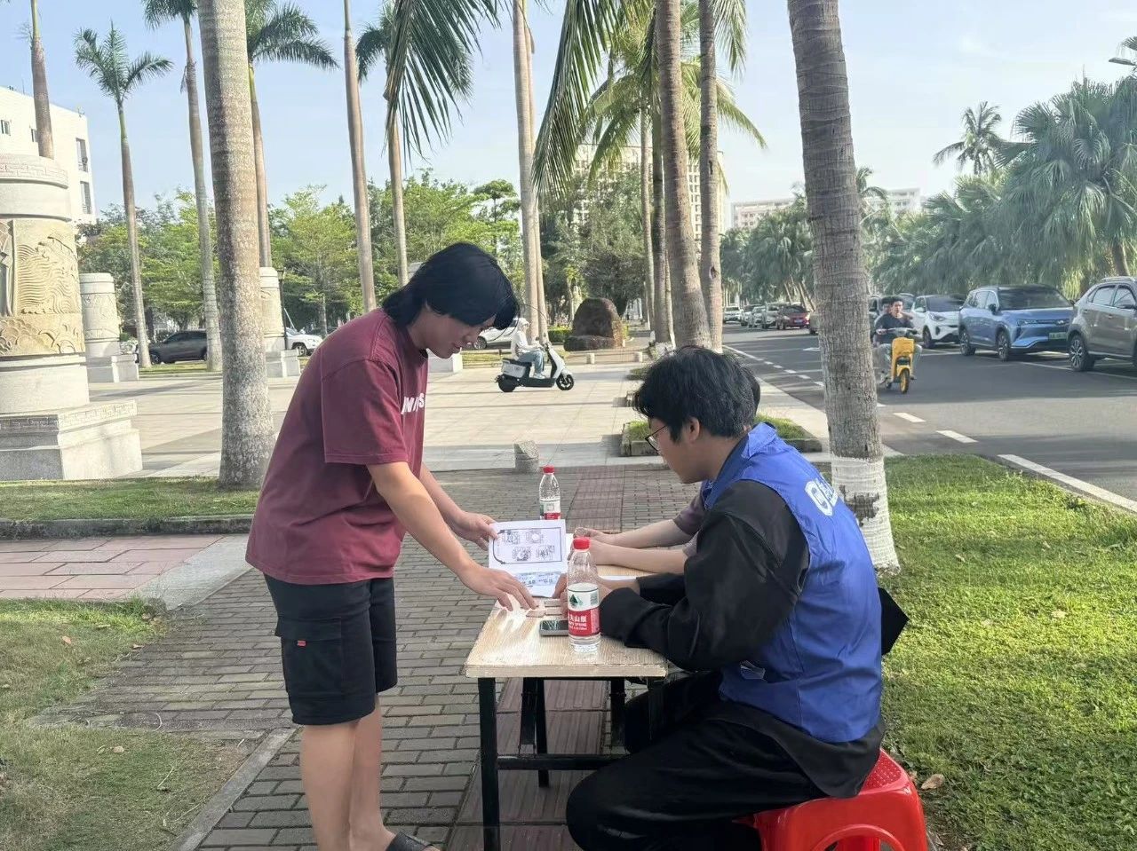 “再来一次!这次我一定能赢!”东门处,同学们热血澎湃,在石头剪刀布的“快节奏对决”中力争连胜三局。有人凭借“读心术”连赢对手,迅速盖上第一个印章;也有人屡败屡战,在围观同学的加油声中调整策略,最终露出胜利的笑容。小小的游戏,让简单的互动也充满了青春的热血。