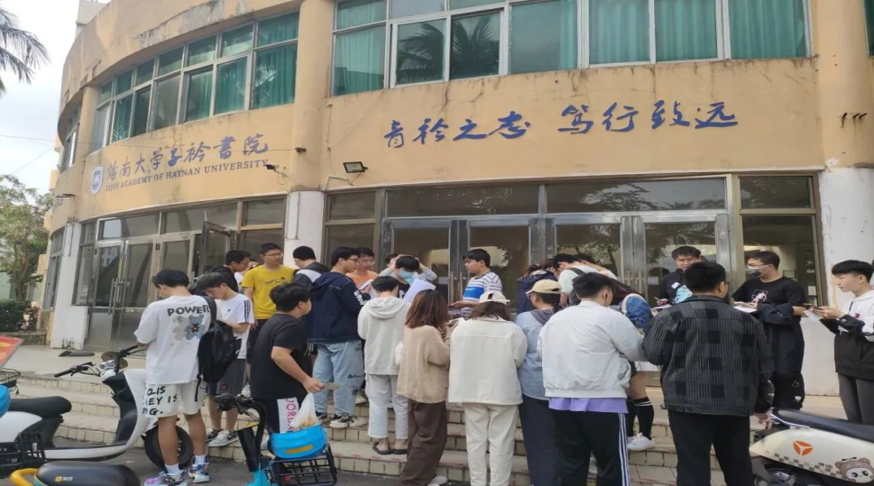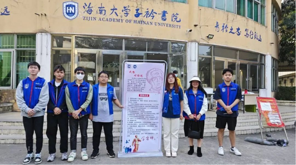 在举行捐书活动的同时,我们还举办了志愿者知识问答活动。许多同学在到达活动场地后,都积极参与其中。问答采用了一对一提问的形式。问题主要围绕着自贸港建设、学雷锋日知识、志愿者日知识等方面。